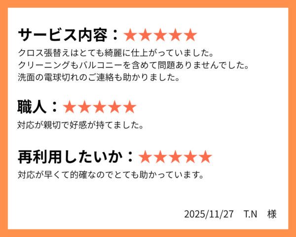 ※クロスやクッションフロアは、通常使用の場合、5年~10年程度の耐久性があります。