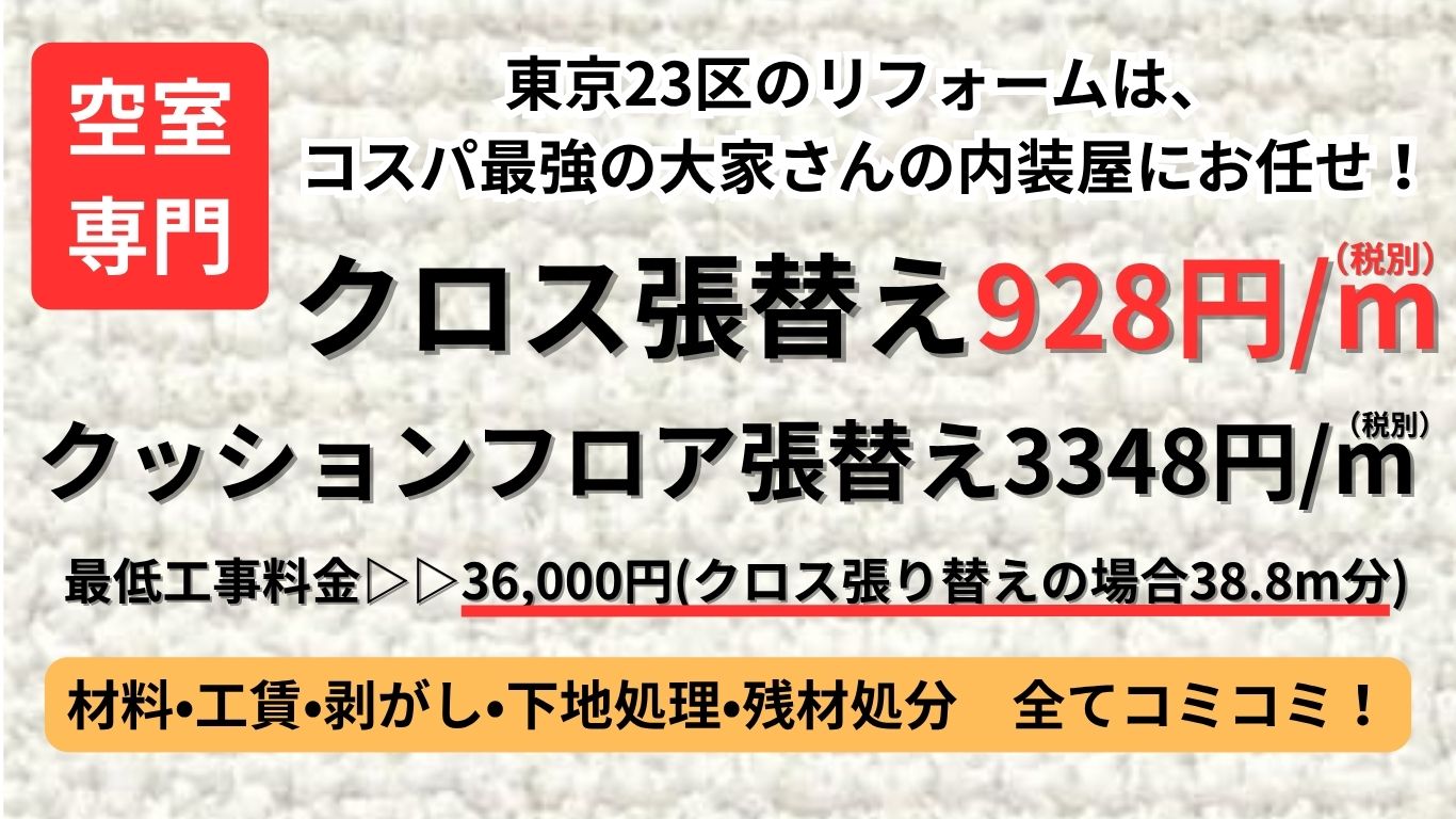 ※クロスやクッションフロアの通常使用の場合、5~10年程度の耐久性がありますのでご安心ください。
